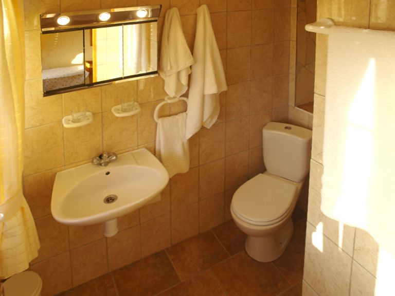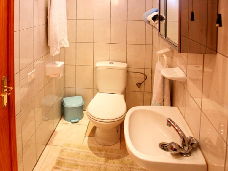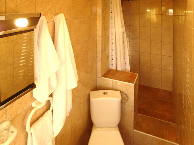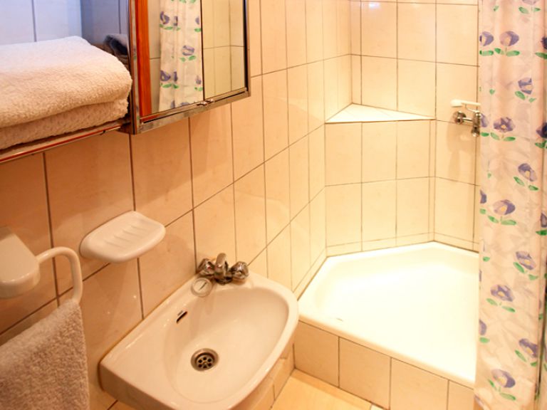 | Das Badezimmer verfügt über Dusche, Waschbecken und WC. Eine Waschmaschine, Safe und Heizung sind ebenfalls vorhanden. | ||