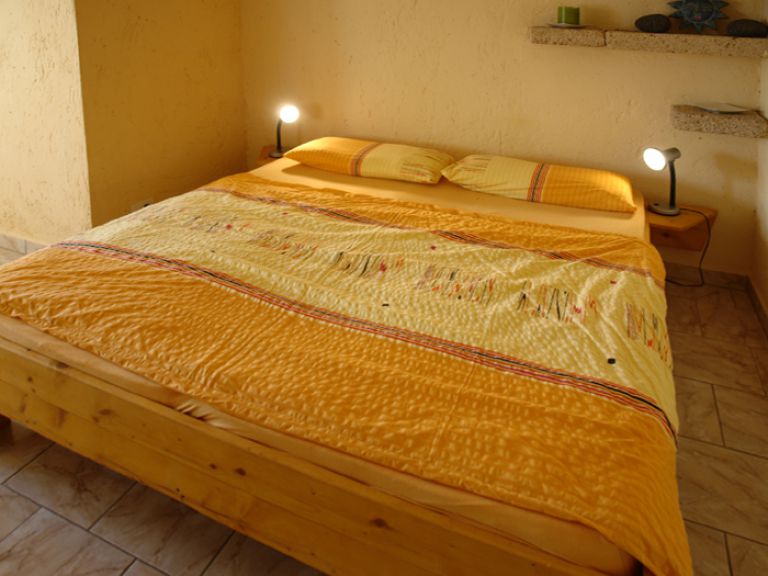 | Das Schlafzimmer ist mit einem bequemen Doppelbett (160 x 200) mit Komfortmatratzen möbliert. | ||