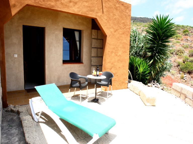 | Vor dem Studio befindet sich eine kleine Terrasse, die mit Gartenmöbeln und einer Sonnenliege möbliert ist und von der Sie einen herrlichen Ausblick genießen. | ||