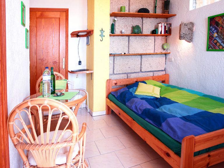 | Zur Ferienwohnung gehört ein Studio für eine 3. Person, das eine Wohnfläche von ca. 20 qm hat. Das Studio besteht aus einem kombinierten Wohn - Schlafraum, der mit einem bequemen Bett (140 x 200), Korb - Sitzgarnitur, SAT - TV und Radio mit CD - Player möbliert ist. Internetzugang erhalten Sie über DSL. Die integrierte Küchenzeile verfügt über einen 2 - Platten - Elektroherd, Kaffeemaschine, Toaster und alles erforderliche Küchenzubehör. Das Badezimmer ist mit Dusche, Waschbecken und WC ausgestattet. | ||