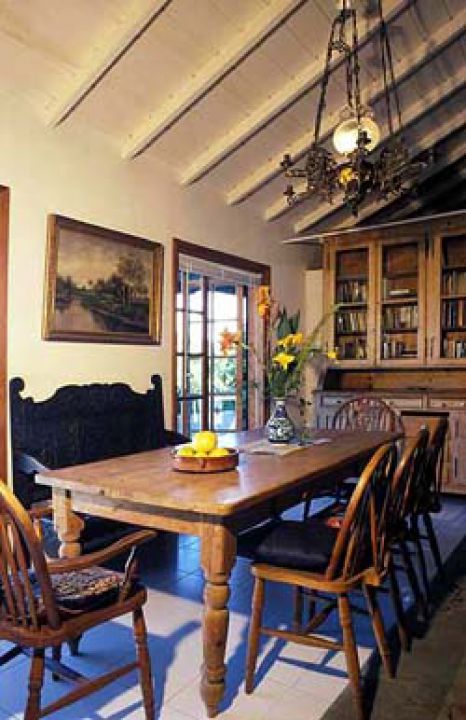 | Ein Schlafzimmer ist mit einem Doppelbett ausgestattet, das andere mit Etagenbett. Eine weitere Schlafmöglichkeit für 2 Personen kann auf der Empore unter dem Holzgiebeldach geschaffen werden. Das Bad ist mit Dusche, Waschbecken und WC ausgestattet. Neben dem Finca Haus befindet sich ein kleines Nebenhaus bestehend aus einem Schlafzimmer mit Doppelbett und einem Duschbad, daß als Schlafmöglichkeit für zwei weitere Personen mit gemietet werden kann. |