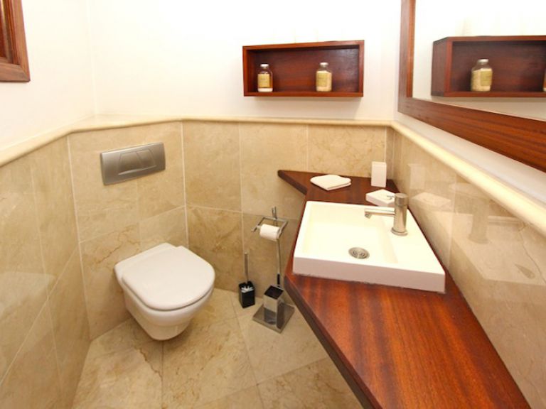 | Das Badezimmer verfügt über eine Dusche, ein Doppelwaschbecken, Bidet, WC und Fön. Darüber hinaus steht ein Gäste WC zur Verfügung. | |||||