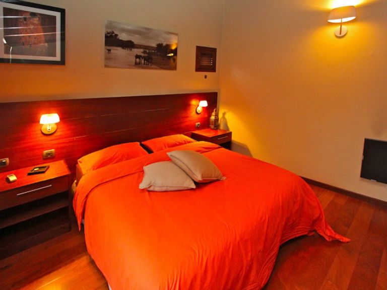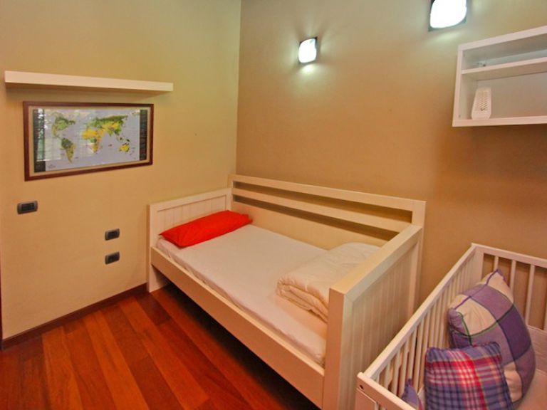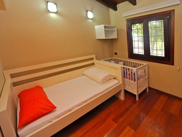 | Das Schlafzimmer mit einem Doppelbett (180 x 200) und Fernseher mit DVD verfügt über einen begehbaren Kleiderschrank, das kleinere Schlafzimmer über ein Einzelbett (90 x 190). Ein Kinderbett und Hochstuhl sind vorhanden. | |||||