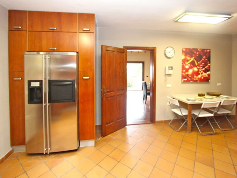 | Die exzellente Küche bietet Ihnen einen sehr hohen Standard mit Geschirrspüler, Backofen, Mikrowelle, Elektrogrill, Kühlgefrierkombination mit Eiswürfelspender, Kaffeemaschine, Toaster und zahlreichen Küchengeräten. In einem separaten Raum stehen Waschmaschine, Wäschetrockner, Bügelbrett und Bügeleisen. |