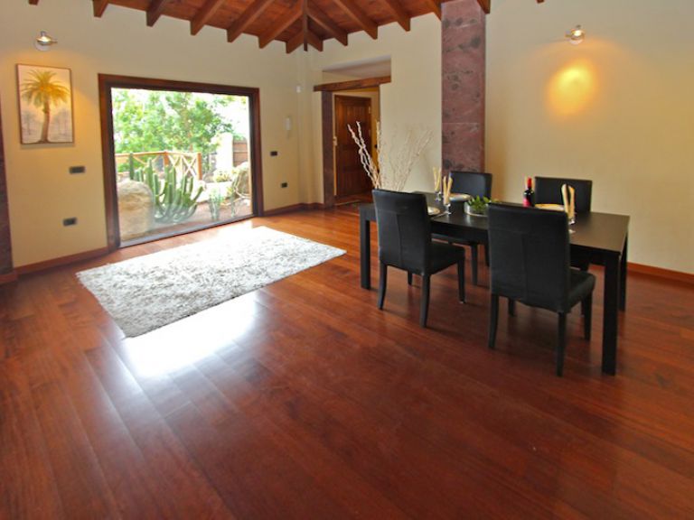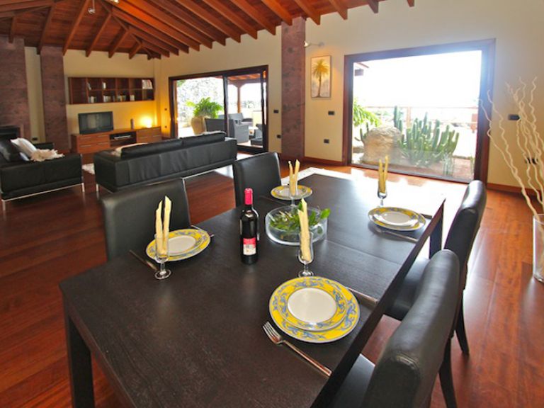 | Mit einer Wohnfläche von ca. 170 qm ist das großzügige Finca - Haus für bis zu 3 Personen geeignet. Die Finca ist ein Nichtraucherhaus. Allein das Wohnzimmer mit Essbereich verfügt über 55 qm Wohnfläche auf einer Ebene und ist mit zwei gemütliche Ledersofas, einem SAT - TV mit Flachbildschirm und einem Essplatz für acht Personen möbliert. |