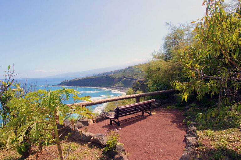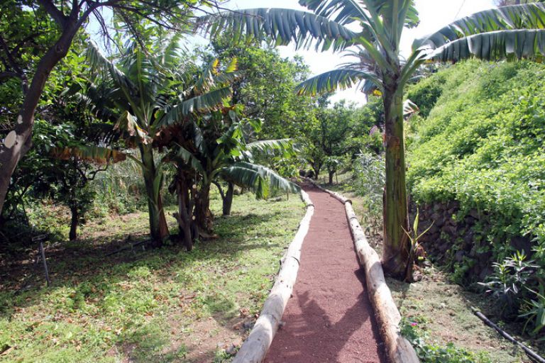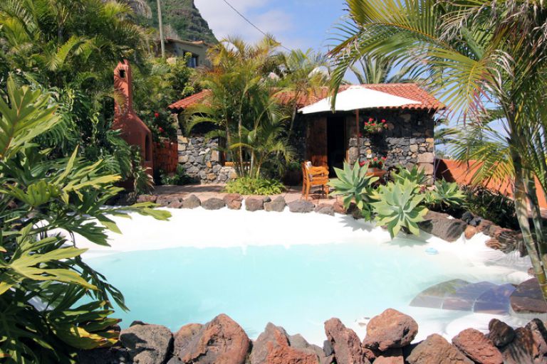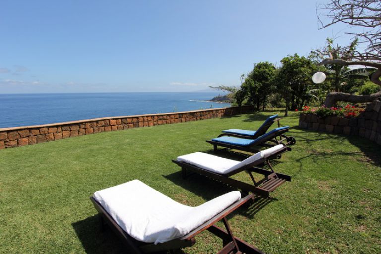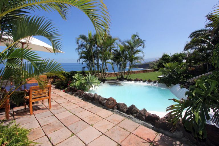 | Das Ferienhaus ist von Terrassen und einem kleinen, sehr gepflegten Garten mit Bananen, Orangen, Papayas und anderen Obstbäumen umgeben. Hier befindet sich auch der runde Swimmingpool mit einem Durchmesser von 5 Metern und einer Tiefe von ca. 80 cm. Gartenmöbel, Sonnenliegen, Sonnenschirm und ein massiver Grillkamin stehen Ihnen zur Verfügung. Von einem Aussichtspunkt auf dem Gelände haben Sie einen phantastischen Blick auf den Socorro Strand. Von hieraus lassen sich z.B. die Wellenreiter beobachten. | ||