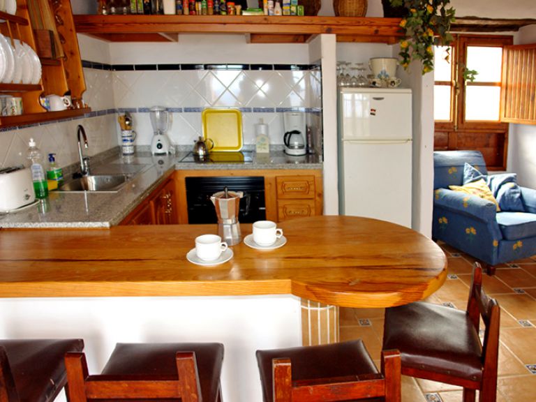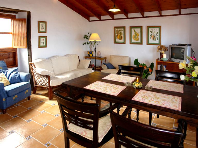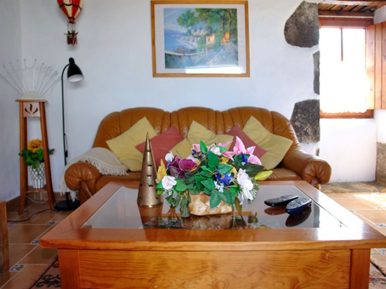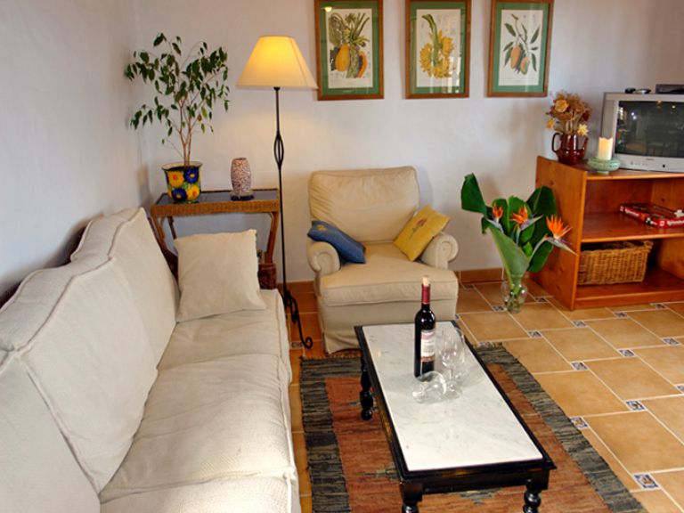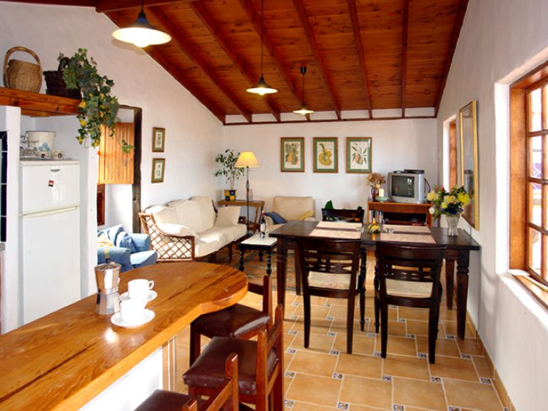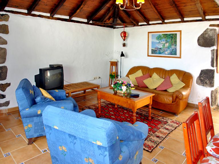 | Das Fincahaus P ist mit ca. 80 qm Wohnfläche für 4 Personen geeignet und verfügt über ein großes Wohnzimmer mit einer hohen Holzdecke, einer gemütlichen Chouchgarnitur, einer kleinen Stereoanlage mit CD - PLayer und SAT - TV. | |||||