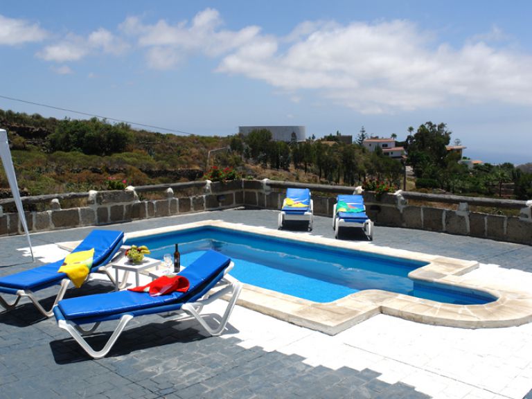 | Der Pool wird auf natürliche Art gereinigt und enthält keine Chemikalien. Neben dem Finca Haus befindet sich ein rustikaler, überdachter Freisitz mit Außengrill. Von der Terrasse genießen Sie einen traumhaften Ausblick auf den Atlantik. | ||