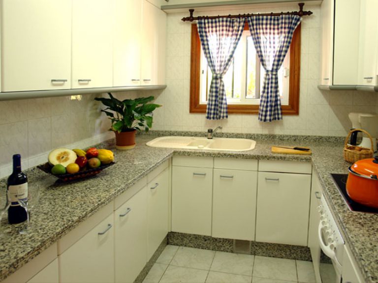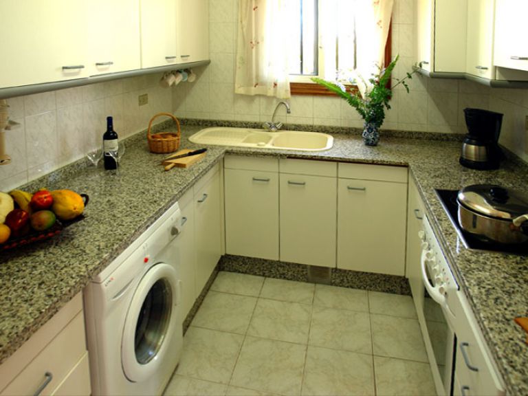| Darüber hinaus steht Ihnen ein Arbeitsraum mit Waschmaschine, Bügeleisen und Bügelbrett zur Verfügung. Sowohl vom Wohnzimmer als auch von einem der Schlafzimmer haben Sie einen direkten Zugang zur großen Sonnenterrasse mit Meerblick. | ||