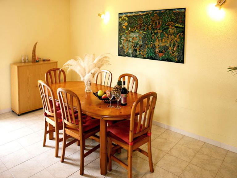 | Die Wohnfläche des gesamten Hauses beträgt ca. 180 qm und verteilt sich auf zwei Etagen. Da beide Wohneinheiten völlig separat sind, eignet sich die Finca hervorragend für zwei befreundete Familien oder auch eine Reisegruppe bis zu 10 Personen. Das Haus wird nur komplett vermietet, nicht an zwei unterschiedliche Parteien. | ||