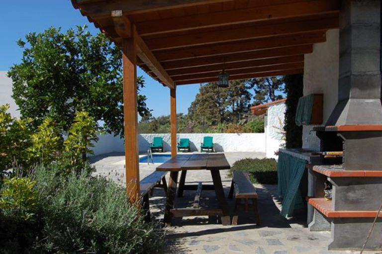 | Die ursprünglichen Stilelemente des Hauses, die Holzdecken, die bis in den Giebel reichen, wurden bei der Restaurierung erhalten und geben dem den Räumen eine warme und gemütliche Atmosphäre. Zum Aussenbereich gehört eine mit Sonnenliegen ausgestattete Terrasse, der Pool zur alleinigen Nutzung und ein überdachter Grillplatz. | |||||