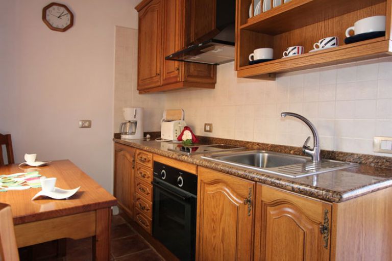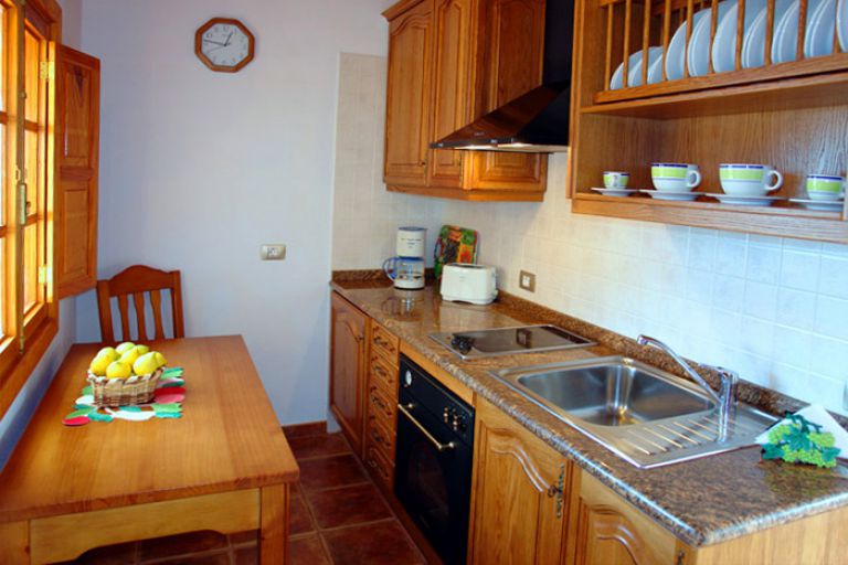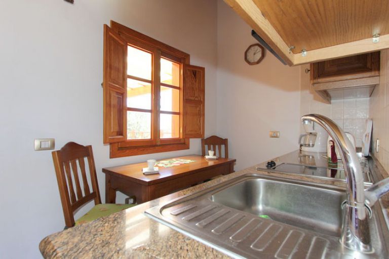 | Mit ca. 60 qm Wohnfläche ist die Finca für 2 Personen geeignet. Das Finca Haus ist hell und freundlich eingerichtet und verfügt über ein großes Wohnzimmer mit Essbereich, eine Küche, ein Schlafzimmer mit einem Doppelbett (160 x 200) und ein Badezimmer mit Dusche, Waschbecken und WC. Ein Babybett kann zur Verfügung gestellt werden. | |||||