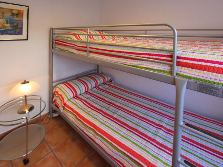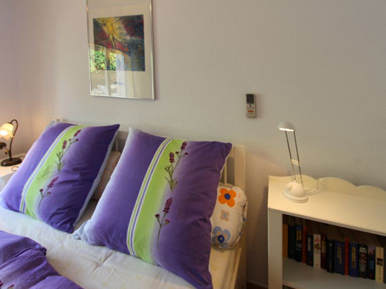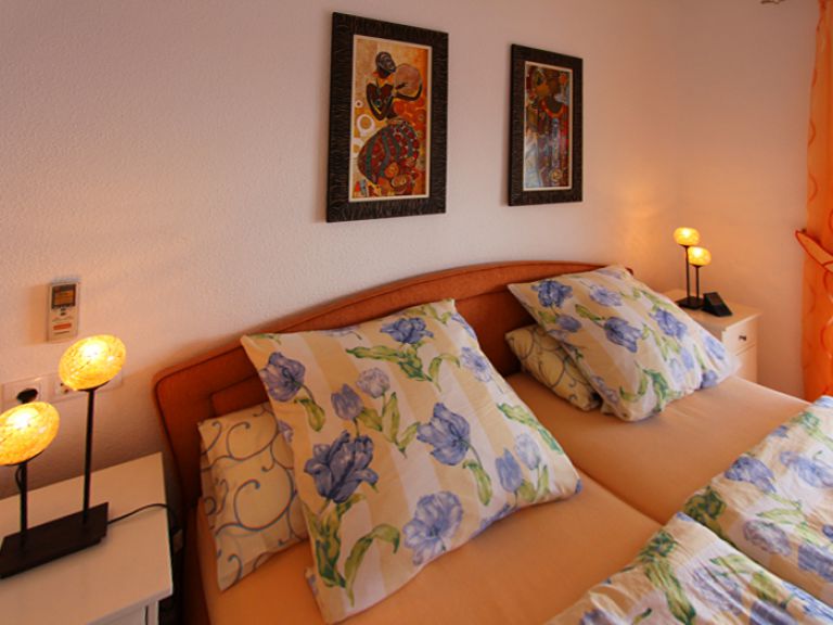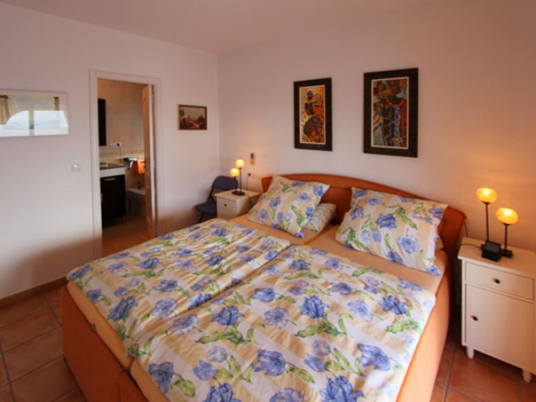 | Zwei der drei hellen und freundlichen Schlafzimmer sind mit Doppelbetten (2 x 90 x 200 und 160 x 200) möbliert. Die beiden Schlafzimmer sind zum angenehmen Temperieren mit Klimageräten ausgestattet. Das dritte Schlafzimmer ist mit einem Etagenbett (2 x 90 x 200) ausgestattet. | |||||
