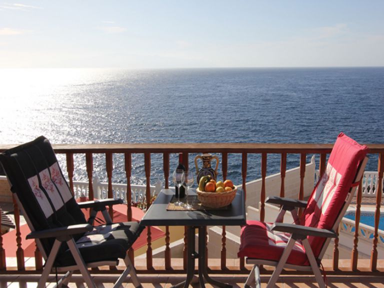 | Die geschmackvolle eingerichtete Villa mit Pool besitzt großzügige Terrassenflächen auf zwei Etagen, von denen Sie einen unvergleichlichen Blick auf das Meer und die Insel La Gomera haben. Genießen Sie abends ein Glas Wein auf einer der beiden Terrassen und beobachten dabei, wie die Sonne spektakulär im Meer versinkt. | |||||