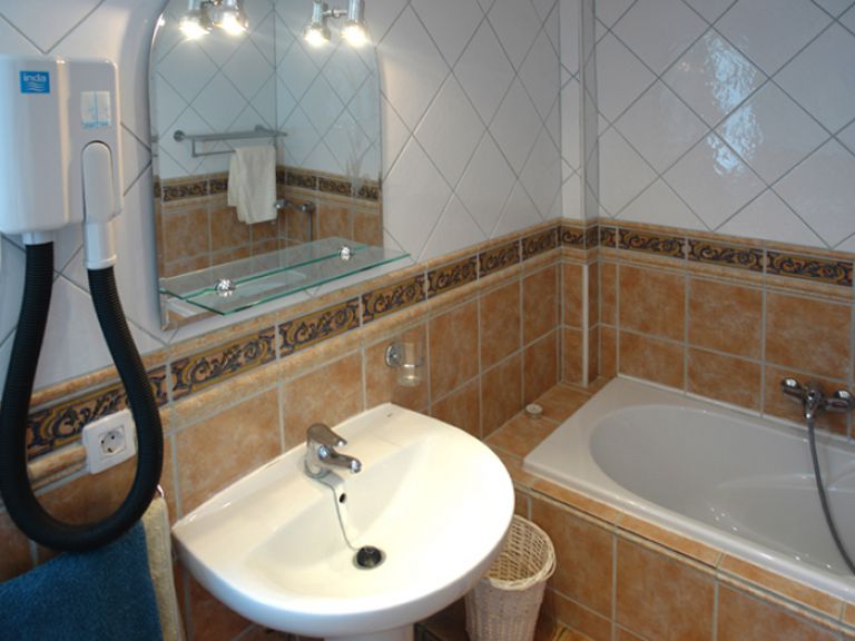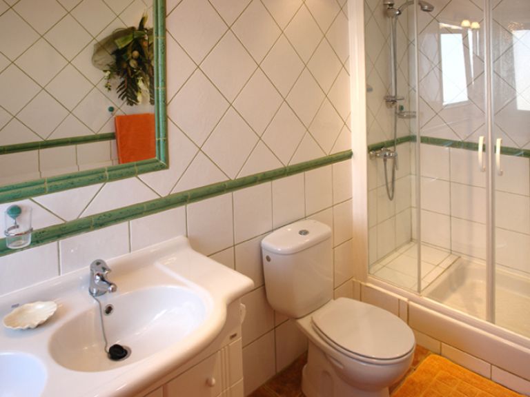 | Zu jedem der drei Schlafzimmer gehört ein eigenes hübsch gefliestes Badezimmer. Die Badezimmer sind mit Dusche, Waschbecken, WC und Bidet ausgestattet. Ein Badezimmer verfügt zusätzlich über eine Badewanne. | |||||