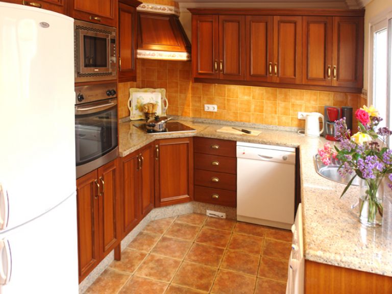 | Die angrenzende Luxusküche lässt keine Wünsche offen und ist mit Cerankochfeld, Backofen, Mikrowelle, Kühlgefrierkombination, Geschirrspüler, Waschmaschine, Kaffeemaschine sowie Heißwassergerät und Toaster ausgestattet. | |||||