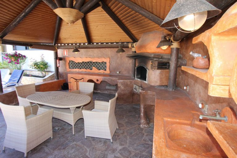| Auf dem ca. 500 qm großen Grundstück steht Ihnen eine geräumige Sonnenterrasse mit Sonnenliegen und Sonnenschirm und ein solarbeheizter Pool zur alleinigen Nutzung zur Verfügung. Die große Veranda neben dem Pool ist überdacht und spendet Schatten. Am Abend können Sie Steaks auf dem Holzkohlegrill auf dem dafür vorgesehenen überdachten Grillplatz zubereiten. Der Grillplatz ist mit einem rustikalen Esstisch für 6 Personen ausgestattet. | |||||
