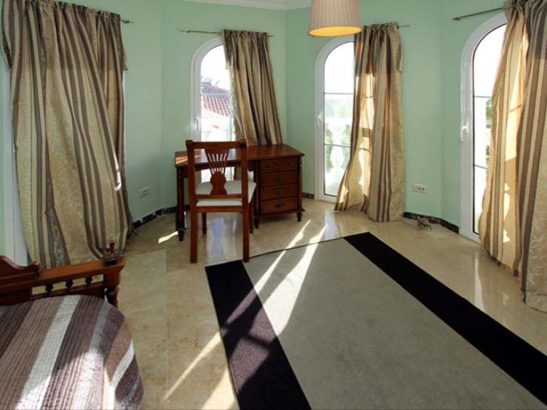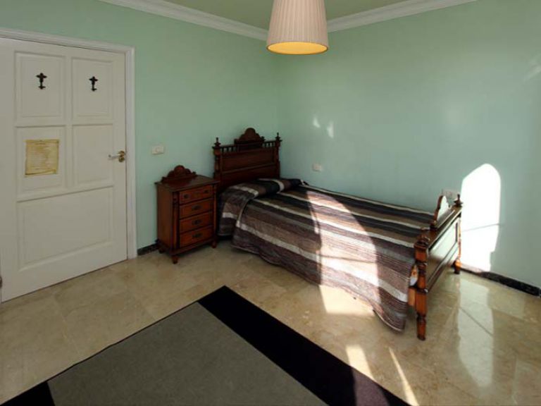 | Die drei sehr großzügigen Schlafzimmer liegen in der ersten Etage. Das ca. 30 qm große Hauptschlafzimmer ist mit einem Doppelbett (150 x 190 mit Komfortmatratze) und einem Einzelbett ausgestattet. Das zu diesem Schlafzimmer gehörende Badezimmer verfügt über eine Rundbadewanne ohne Massagedüsenfunktion, Waschbecken, Bidet und WC. | |||||