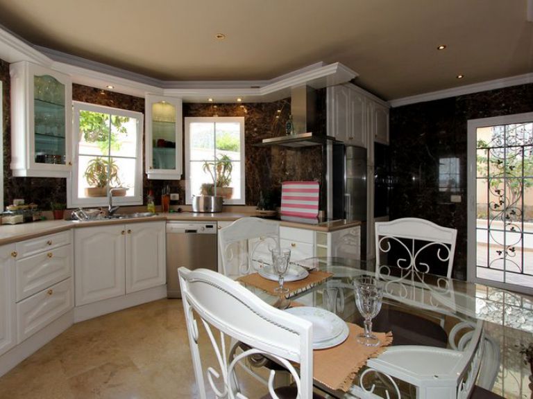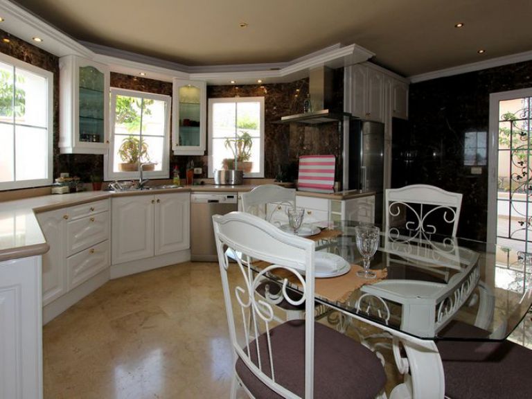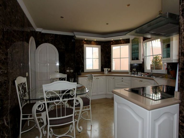 | Die Einbauküche verfügt über Geschirrspüler, Cerankochfeld, Backofen, Mikrowelle, Kühlgefrierkombination, Kaffeemaschine, Toaster, Heißwassergerät, Saftpresse und alle sonst notwendigen Küchenutensilien. Waschmaschine, Bügeleisen und Bügelbrett sind ebenfalls vorhanden. In diesem Bereich befindet sich auch das Gäste-WC. | |||||